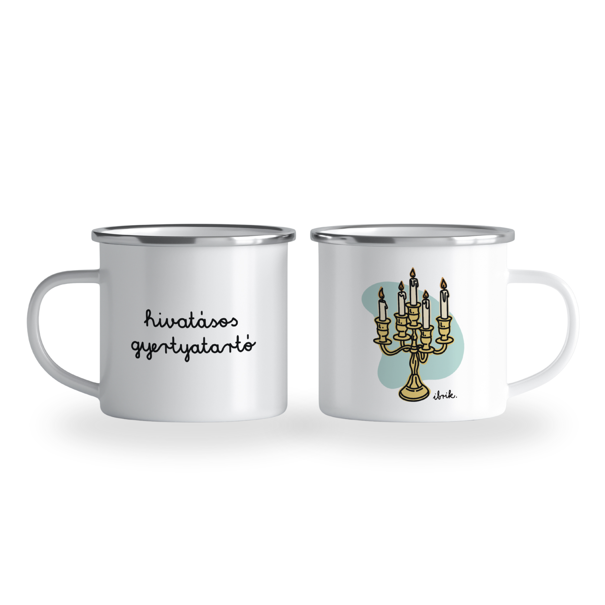 "Hivatásos gyertyatartó" cană emailată, alb, ibrik, 360 ml