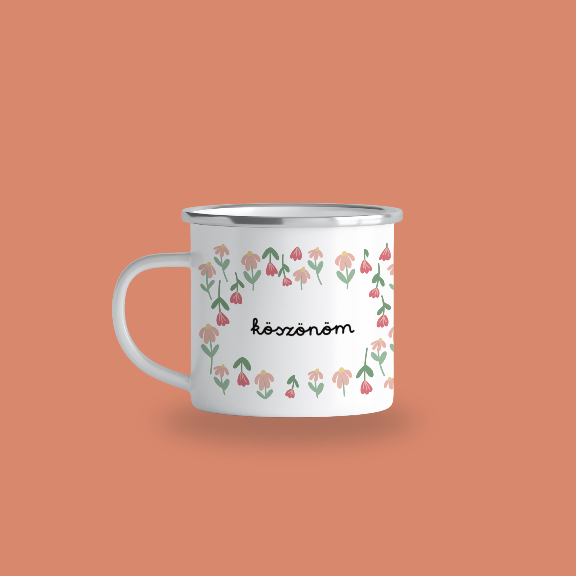 „Köszönöm”- tulips, cană emailată, alb, ibrik, 360 ml