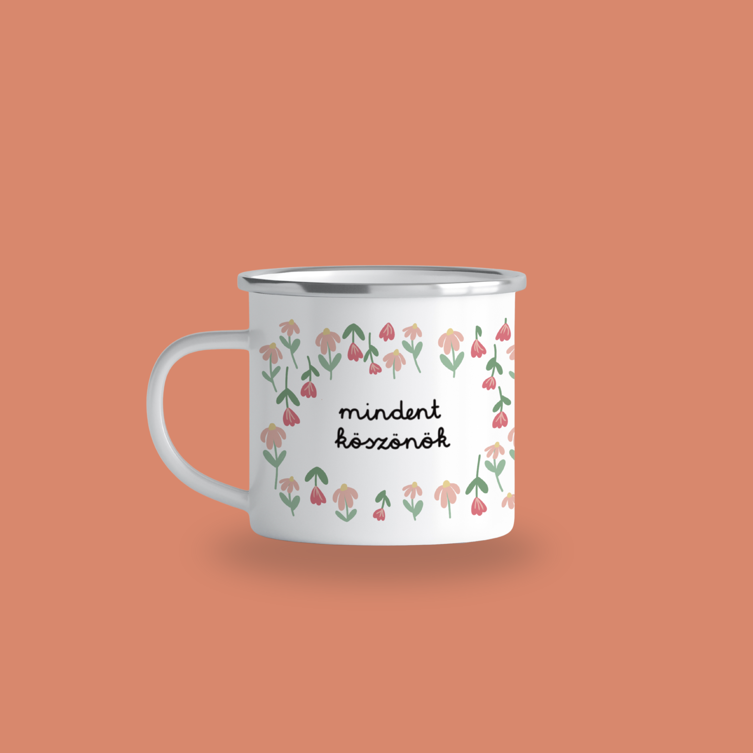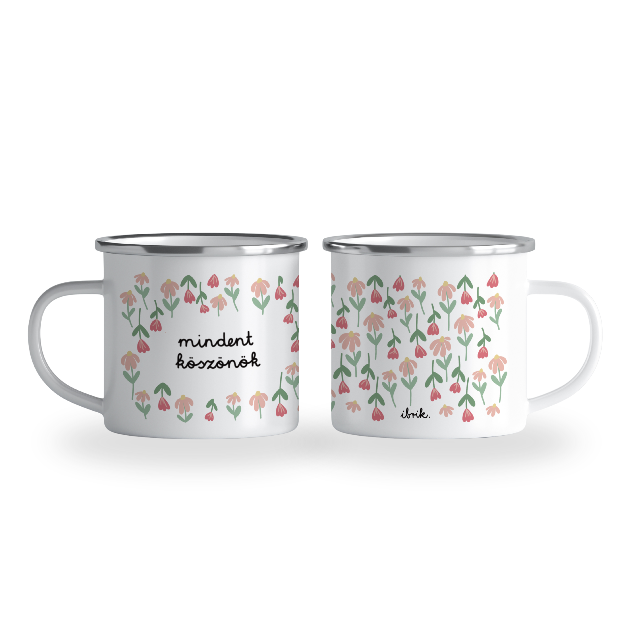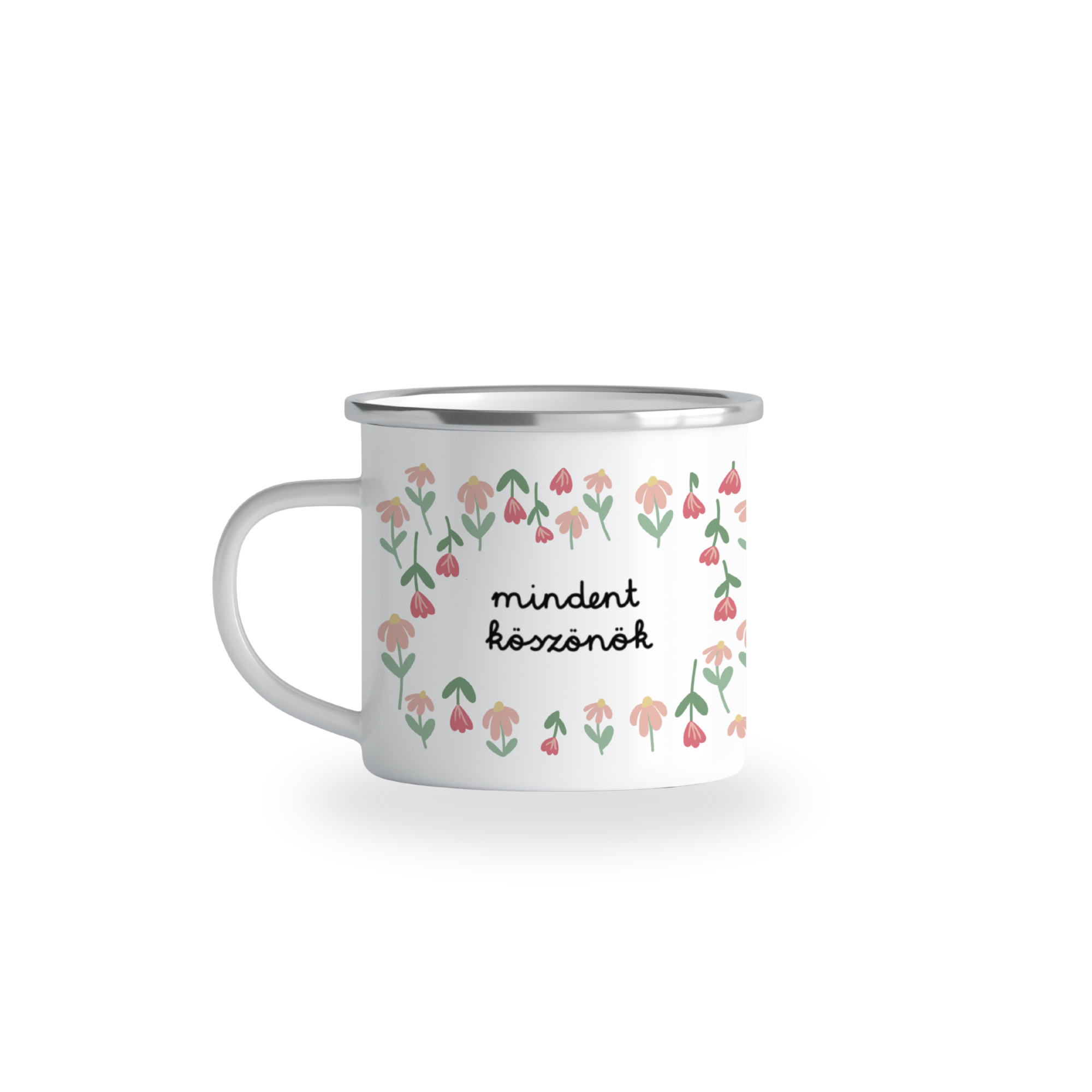 „Mindent köszönök”- tulips, cană emailată, alb, ibrik, 360 ml