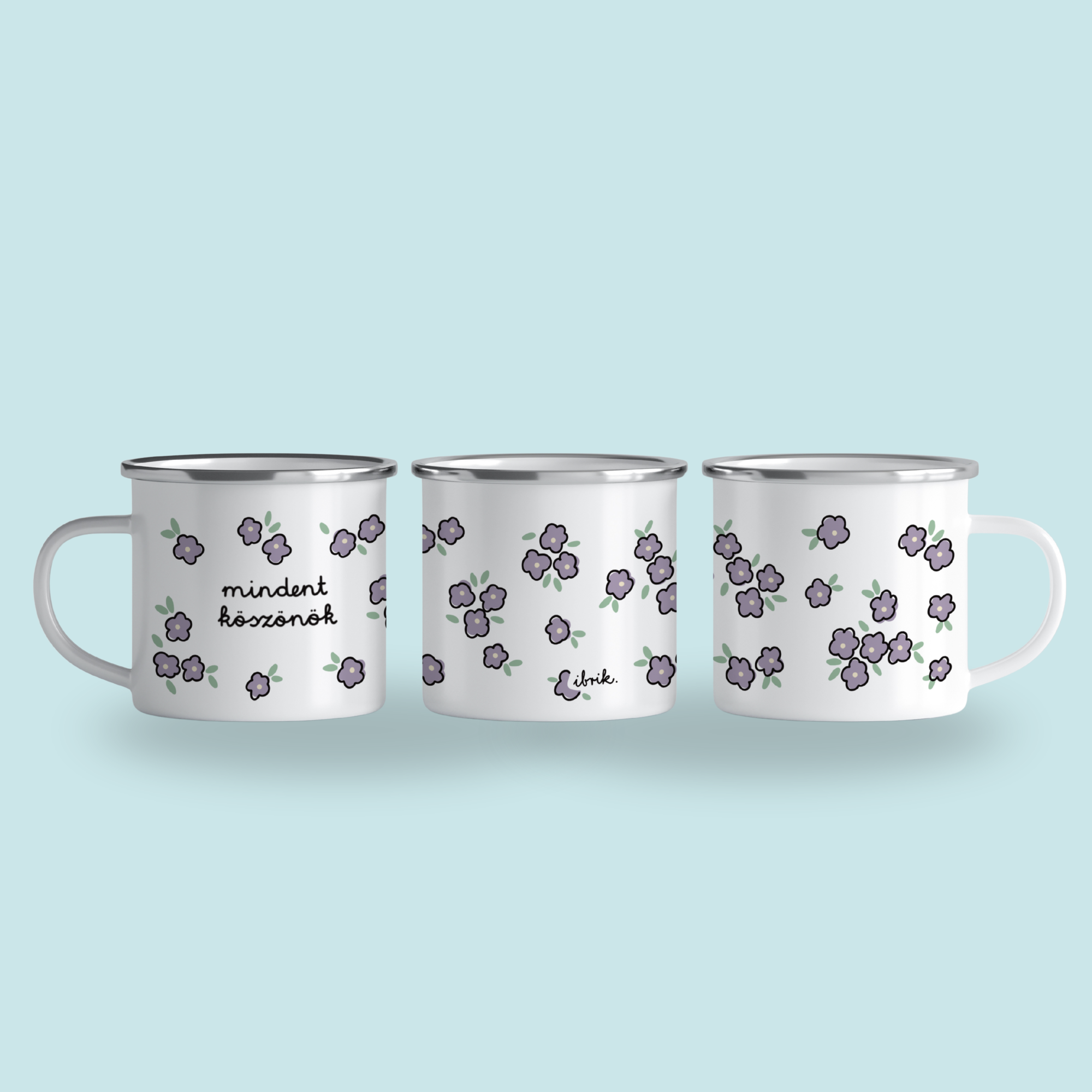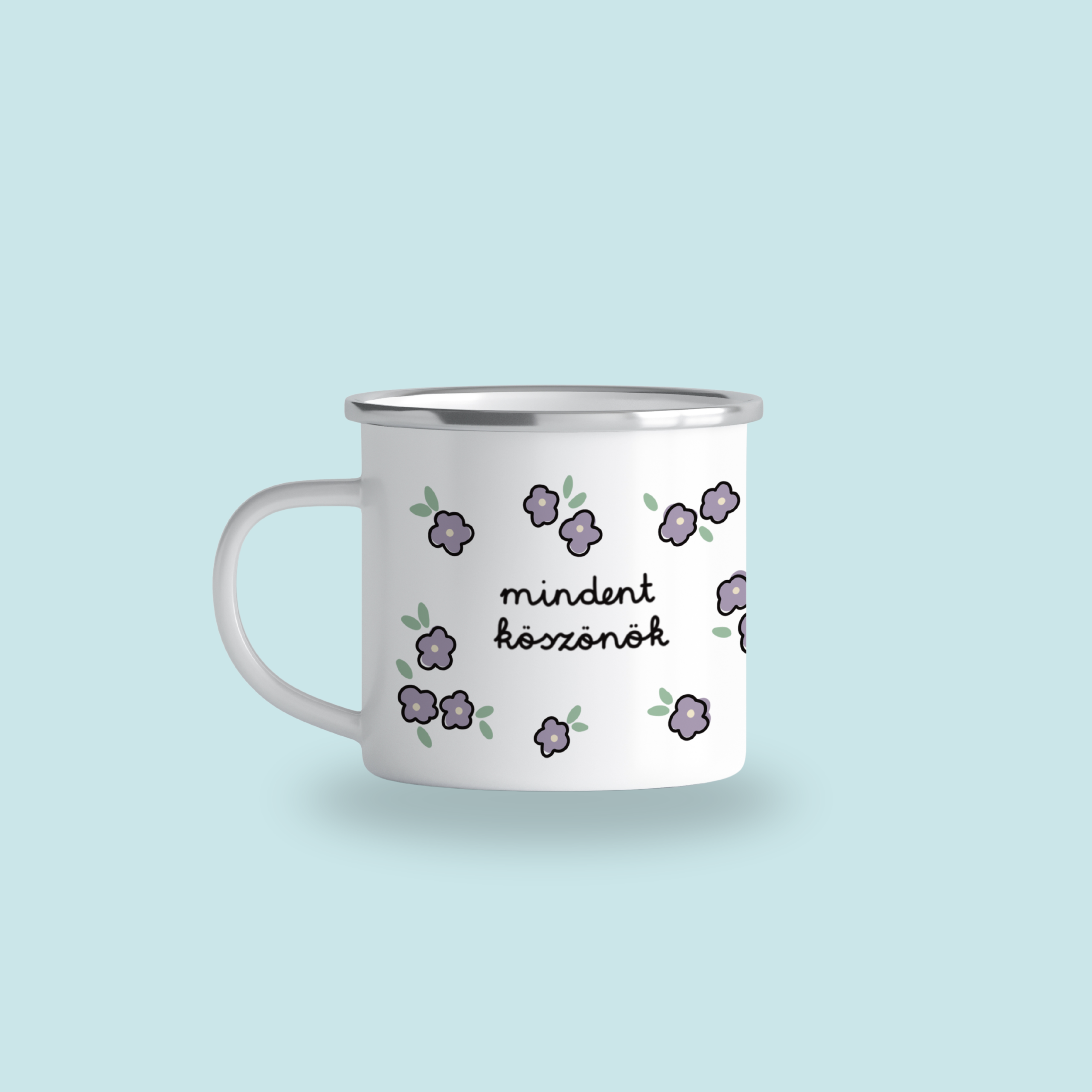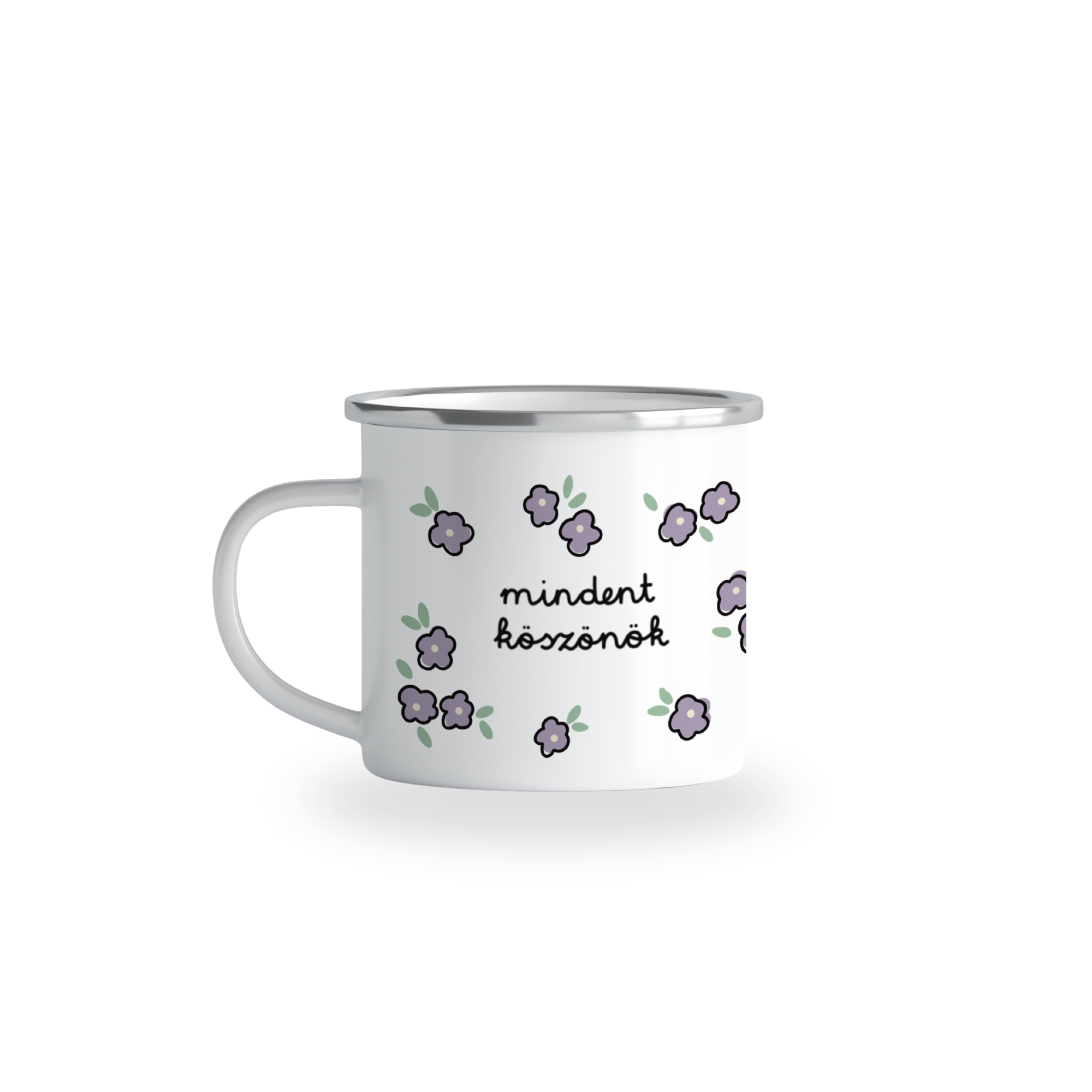 „Mindent köszönök”- violets, cană emailată, alb, ibrik, 360 ml