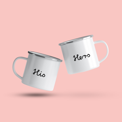 Pachet cadou „His & Hers” cu 2 căni emailate