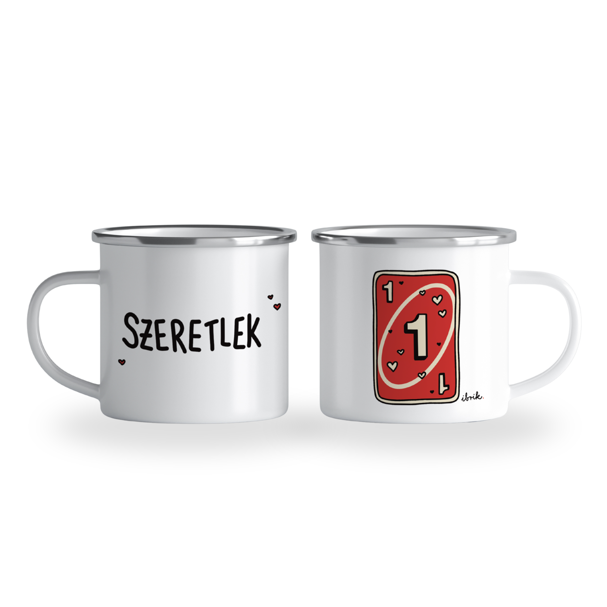Pachet cadou UNO „szeretlek” & „én téged jobban” cu 2 căni emailate