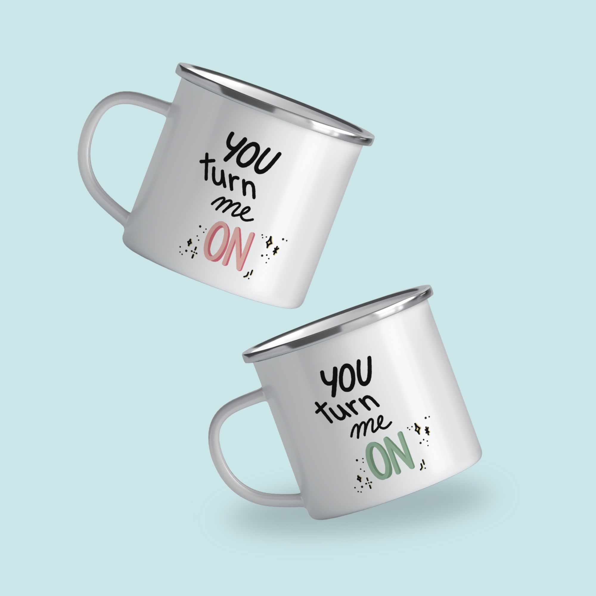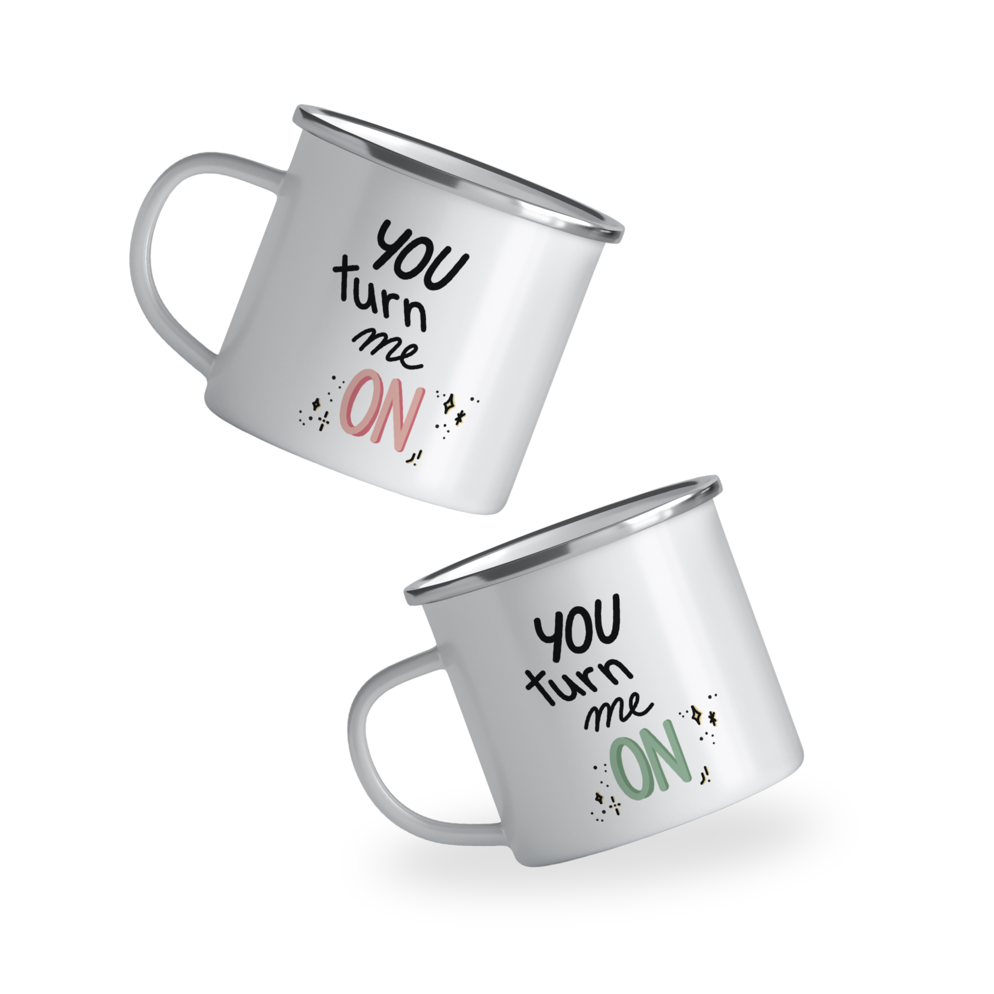 Pachet cadou „You turn me on” cu 2 căni emailate – PINK & GREEN