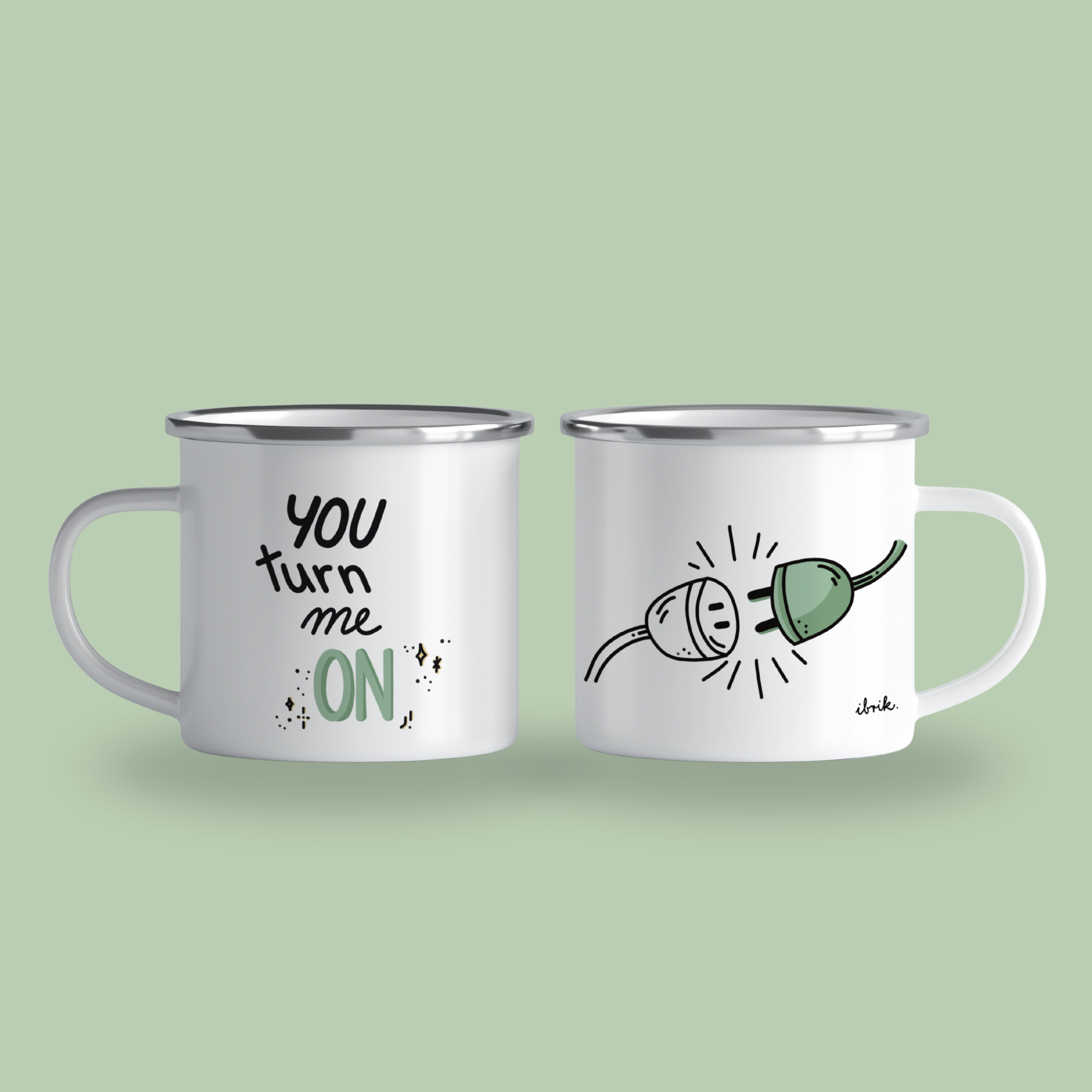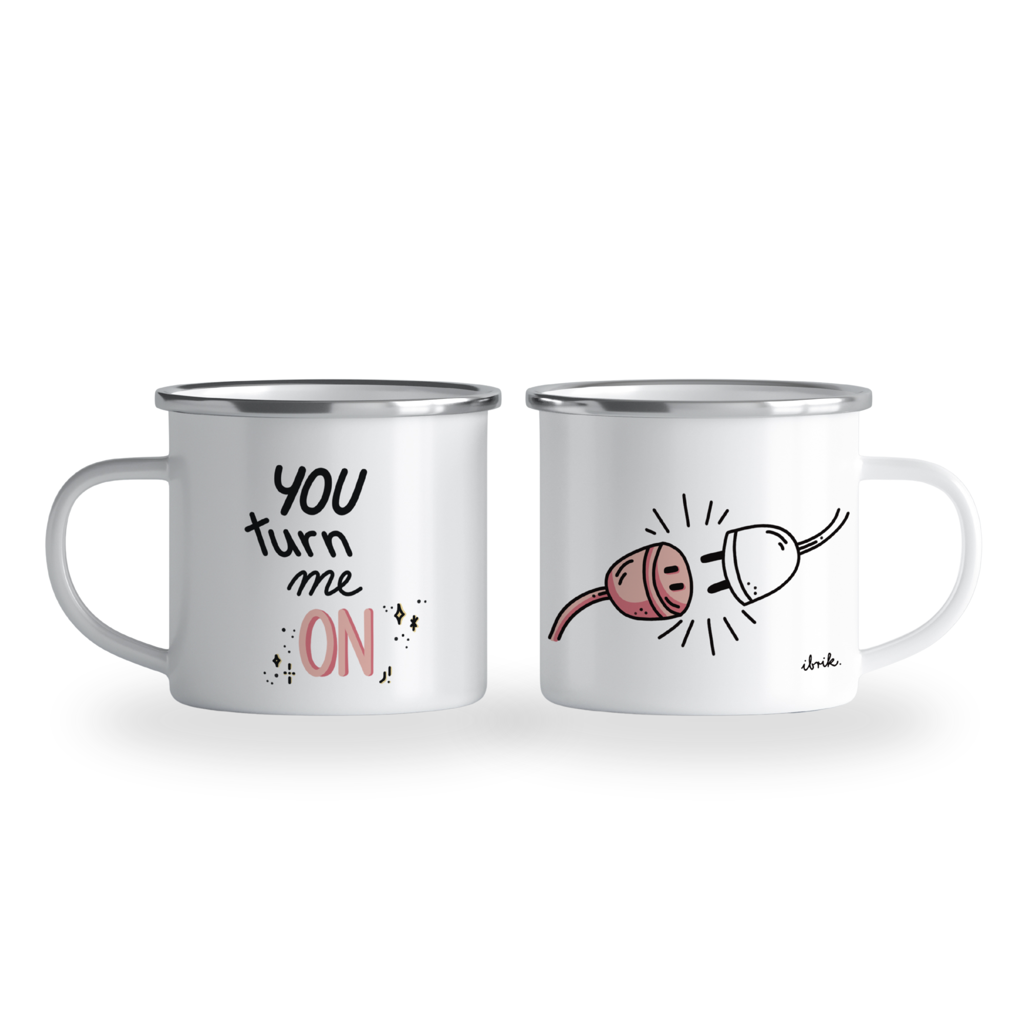 Pachet cadou "You turn me on" cu 2 căni emailate - PINK & GREEN