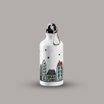 Sticlă de apă din aluminiu Christmas town, tip MAKALU, alb, 500 ml