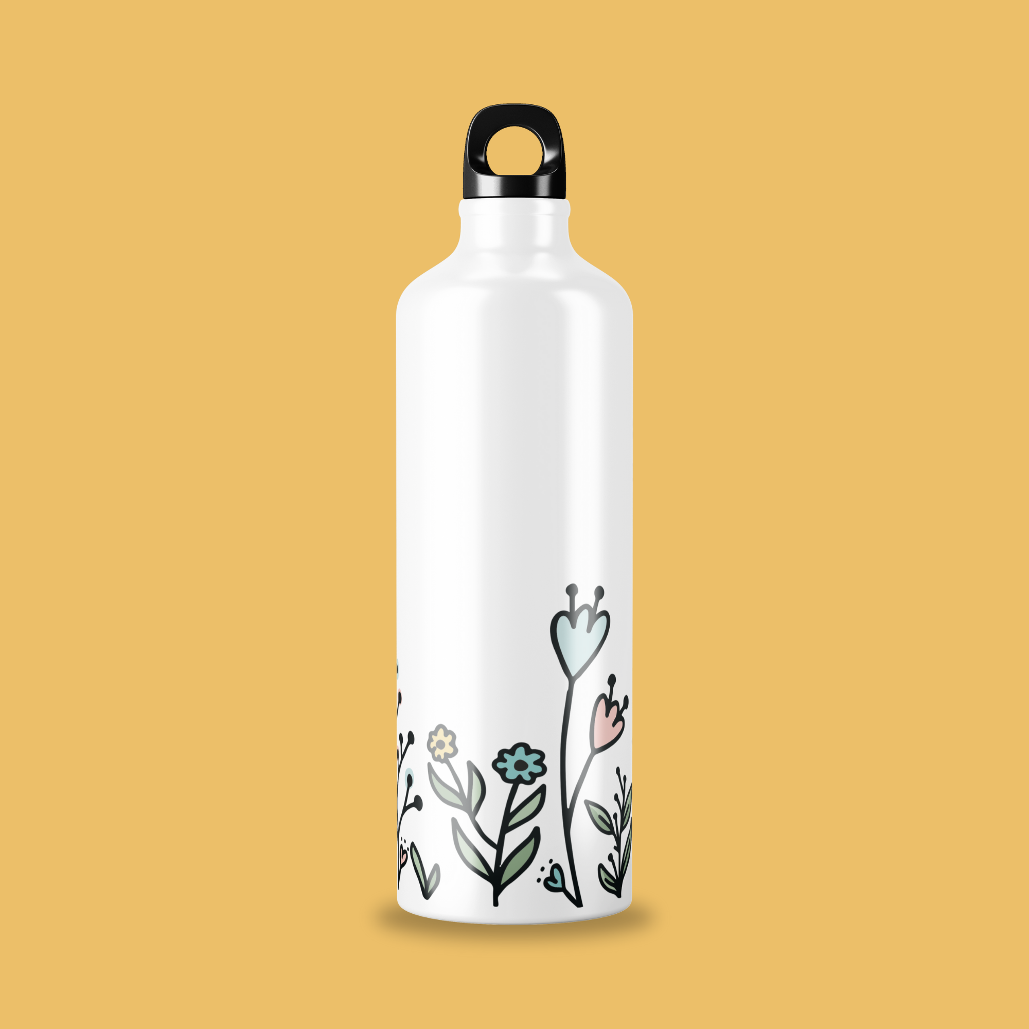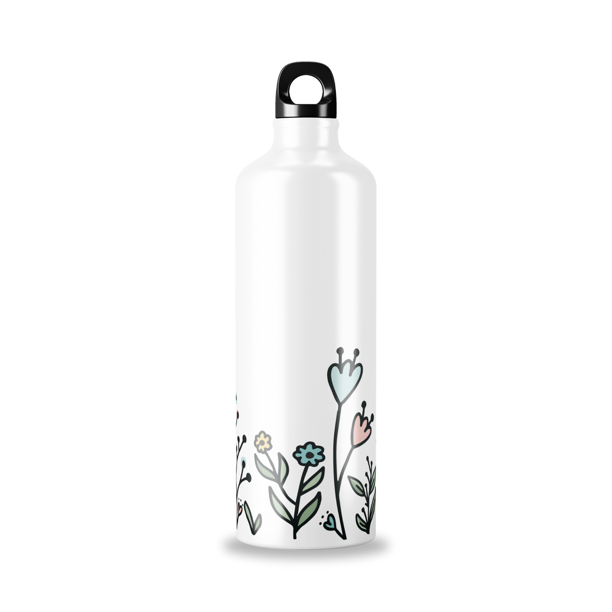 Sticlă de apă din aluminiu Flowers, tip FUJI, alb, 750 ml