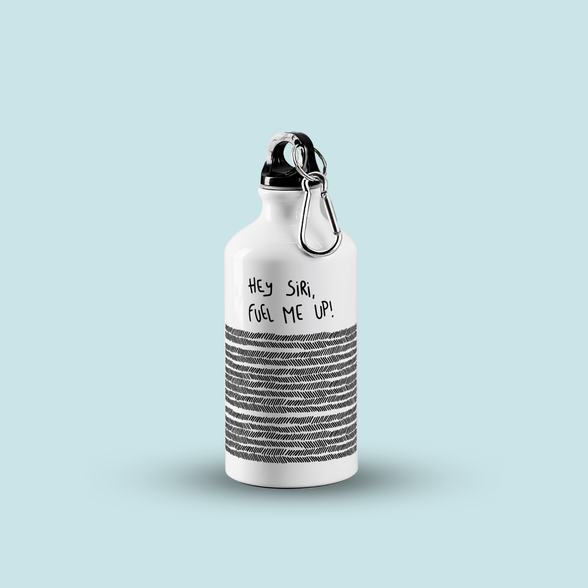Sticlă de apă din aluminiu Hey Siri – fuel me up, tip MAKALU, alb, 500 ml