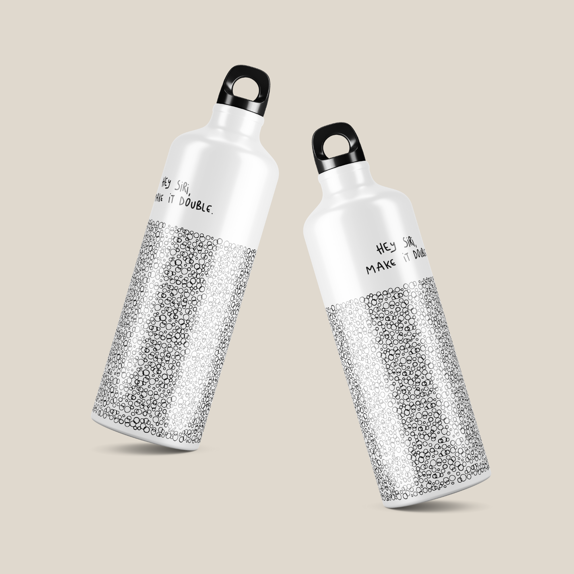 Sticlă de apă din aluminiu Hey Siri - make it double, tip FUJI, alb, 750 ml