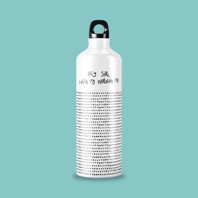 Sticlă de apă din aluminiu Hey Siri - morning fix, tip FUJI, alb, 750 ml