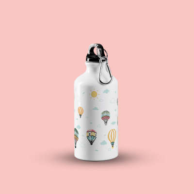 Sticlă de apă din aluminiu Hot air balloon, tip MAKALU, alb, 500 ml