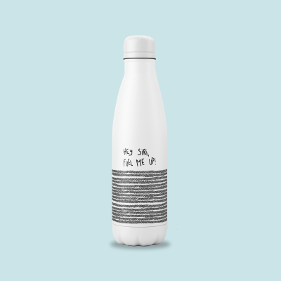 Sticlă din oțel inoxidabil "Hey Siri - fuel me up", tip EVEREST, alb, 750 ml