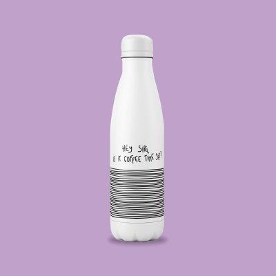 Sticlă din oțel inoxidabil "Hey Siri - is it coffee time yet?", tip EVEREST, alb, 750 ml