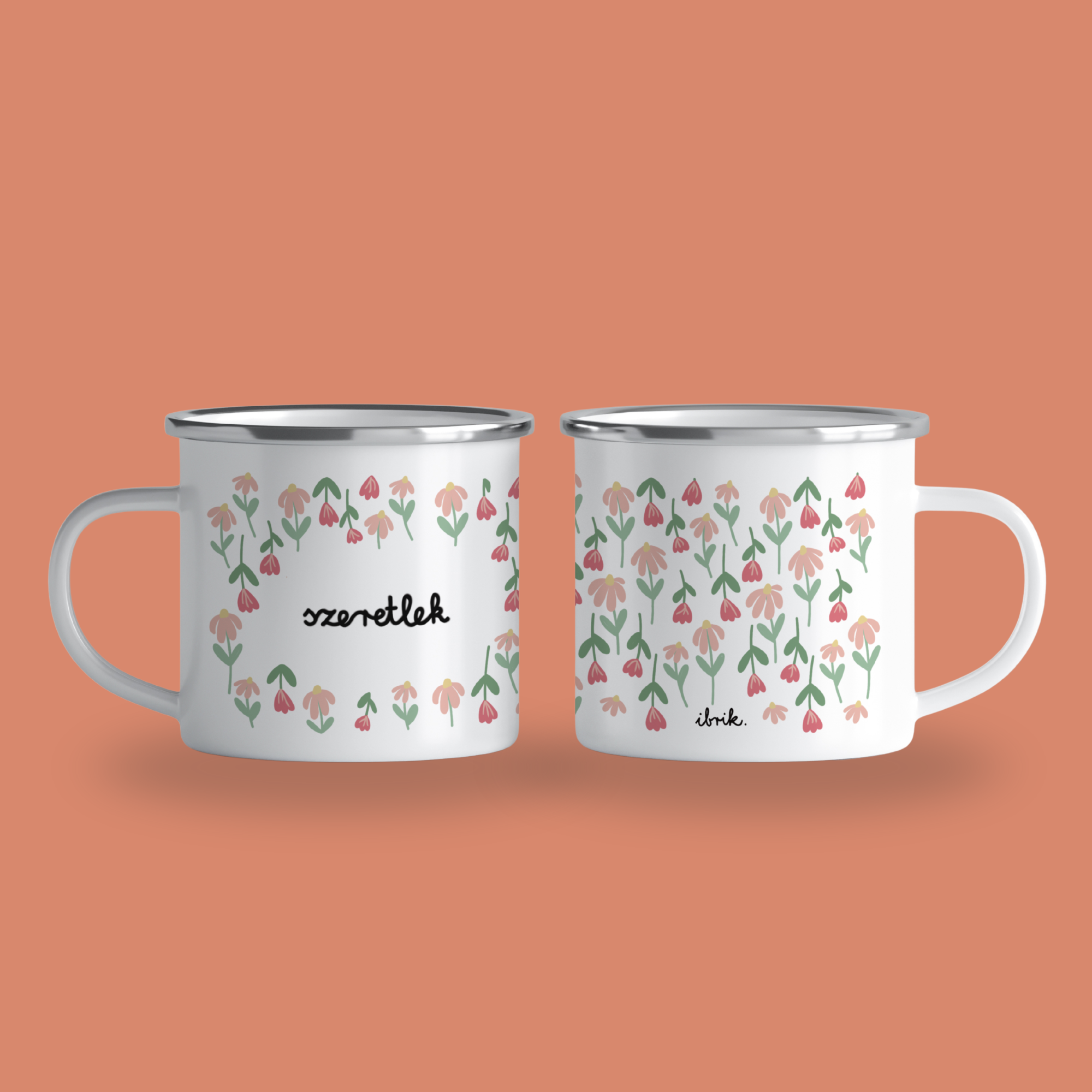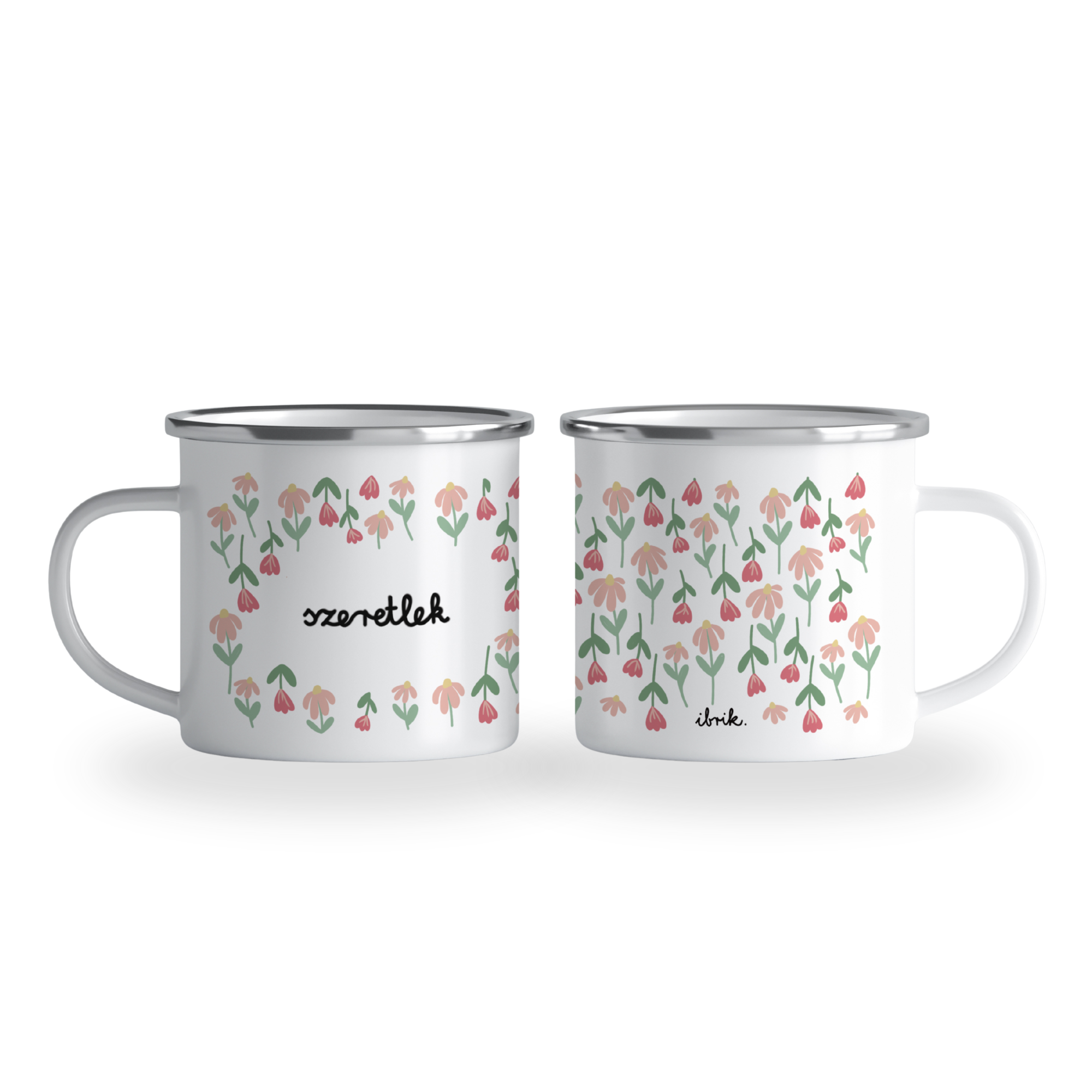 „Szeretlek”- tulips, cană emailată, alb, ibrik, 360 ml