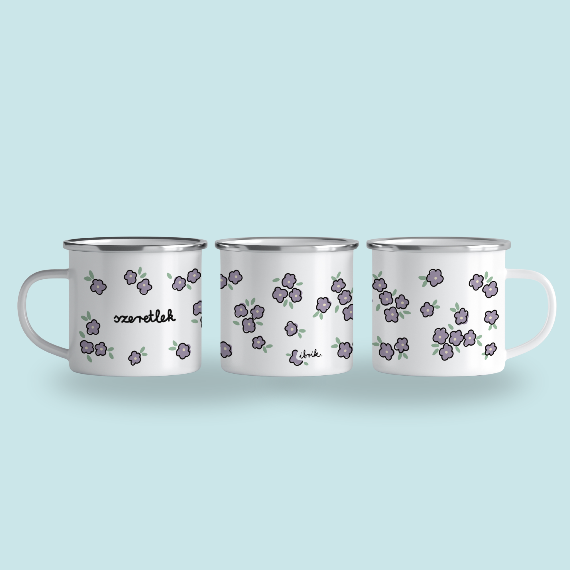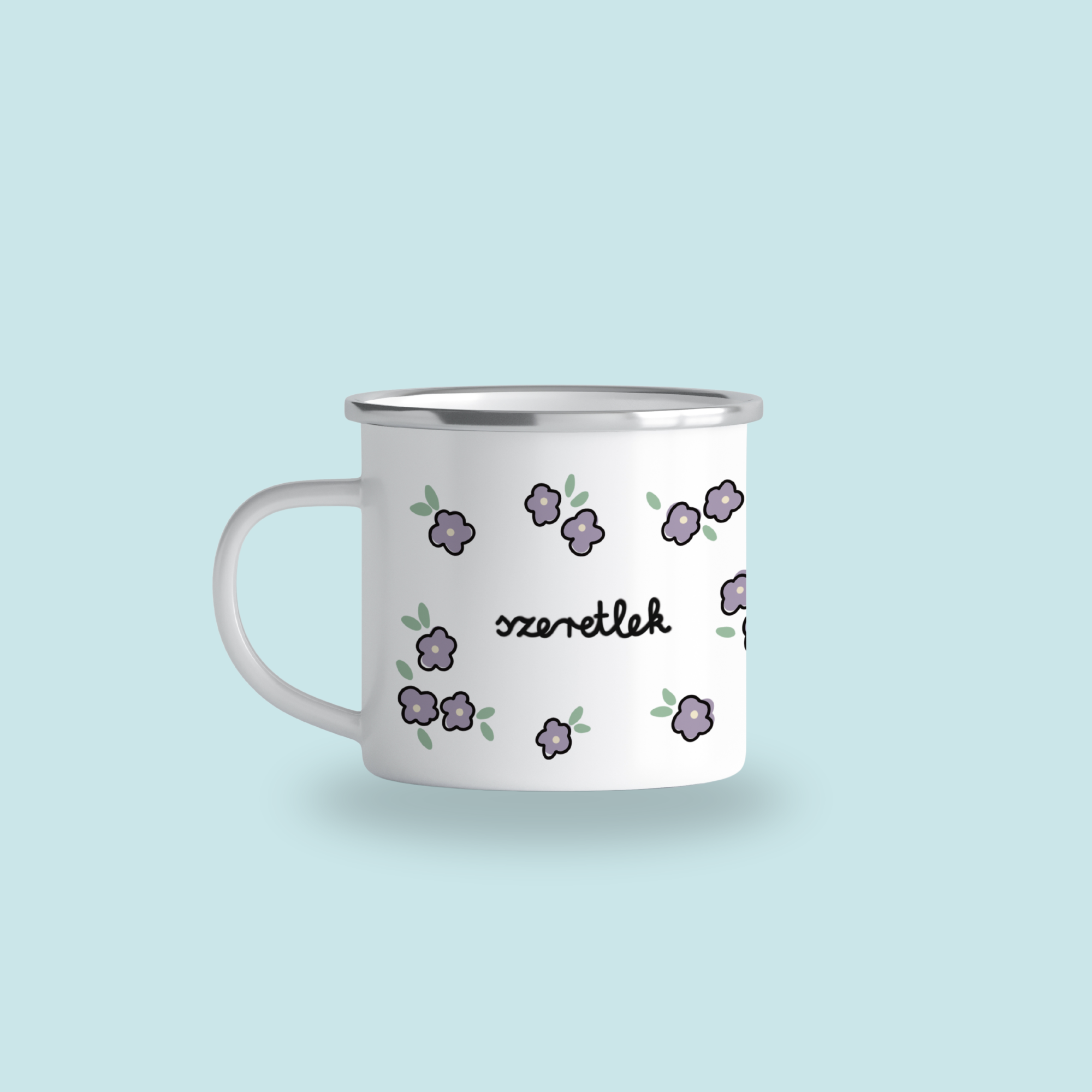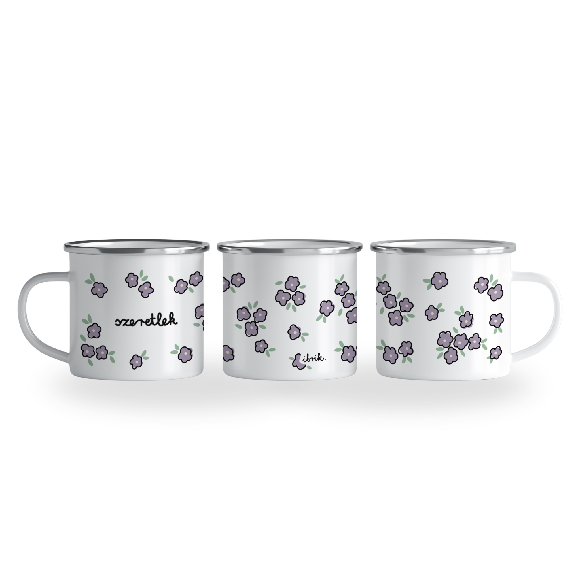 „Szeretlek”- violets, cană emailată, alb, ibrik, 360 ml