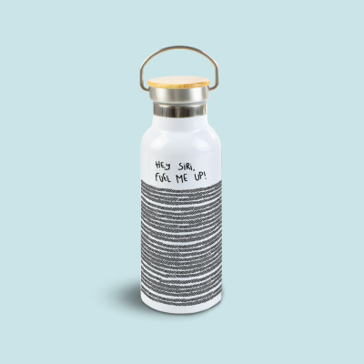 Termos dublu din oțel inoxidabil „Hey Siri – fuel me up”, tip ELBRUS, alb, 500 ml