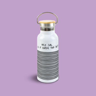 Termos dublu din oțel inoxidabil „Hey Siri – is it coffee time yet?”, tip ELBRUS, alb, 500 ml