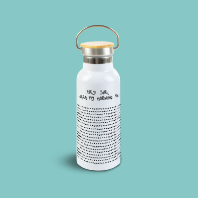 Termos dublu din oțel inoxidabil "Hey Siri - morning fix", tip ELBRUS, alb, 500 ml