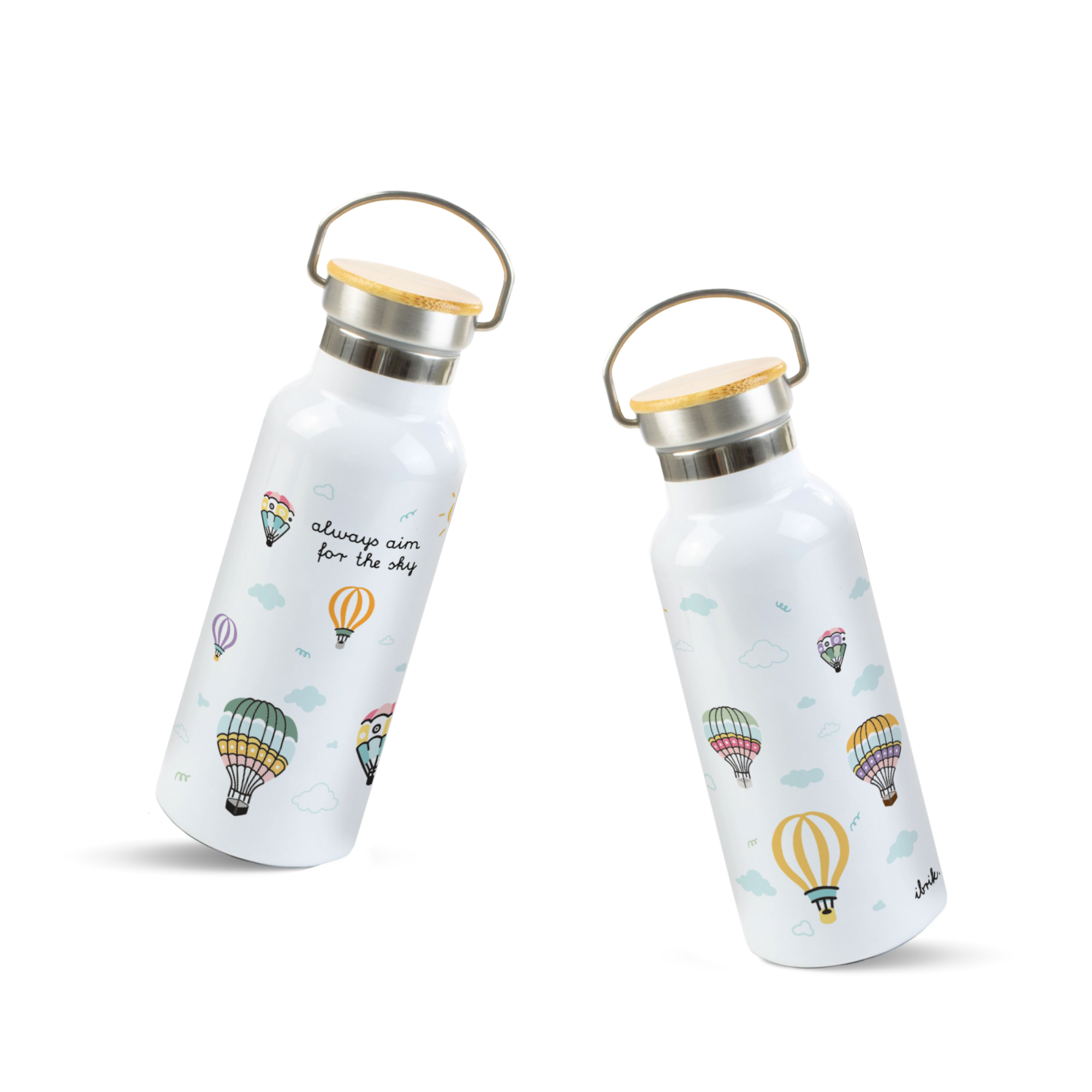 Termos dublu din oțel inoxidabil Hot air balloon - aim for the sky, tip ELBRUS, alb, 500 ml
