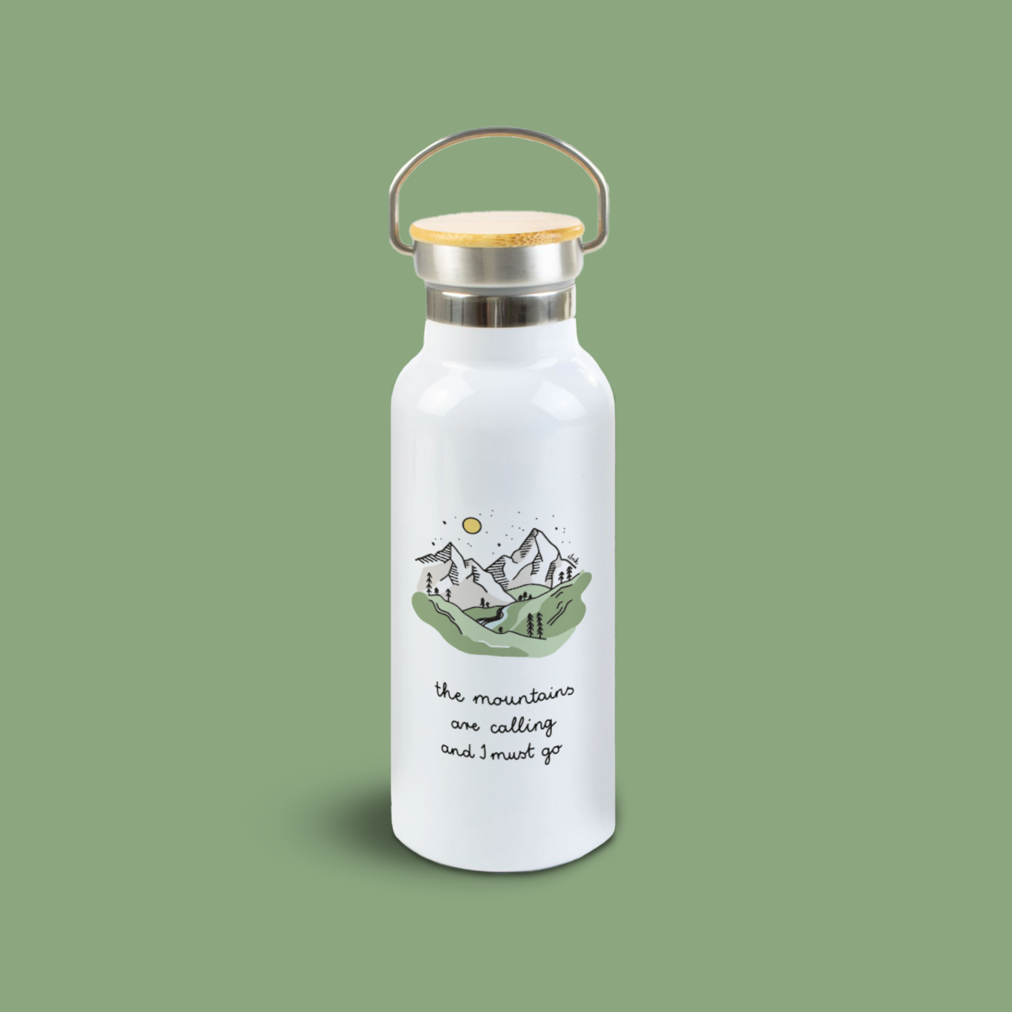 Termos dublu din oțel inoxidabil Nature mountains, tip ELBRUS, alb, 500 ml