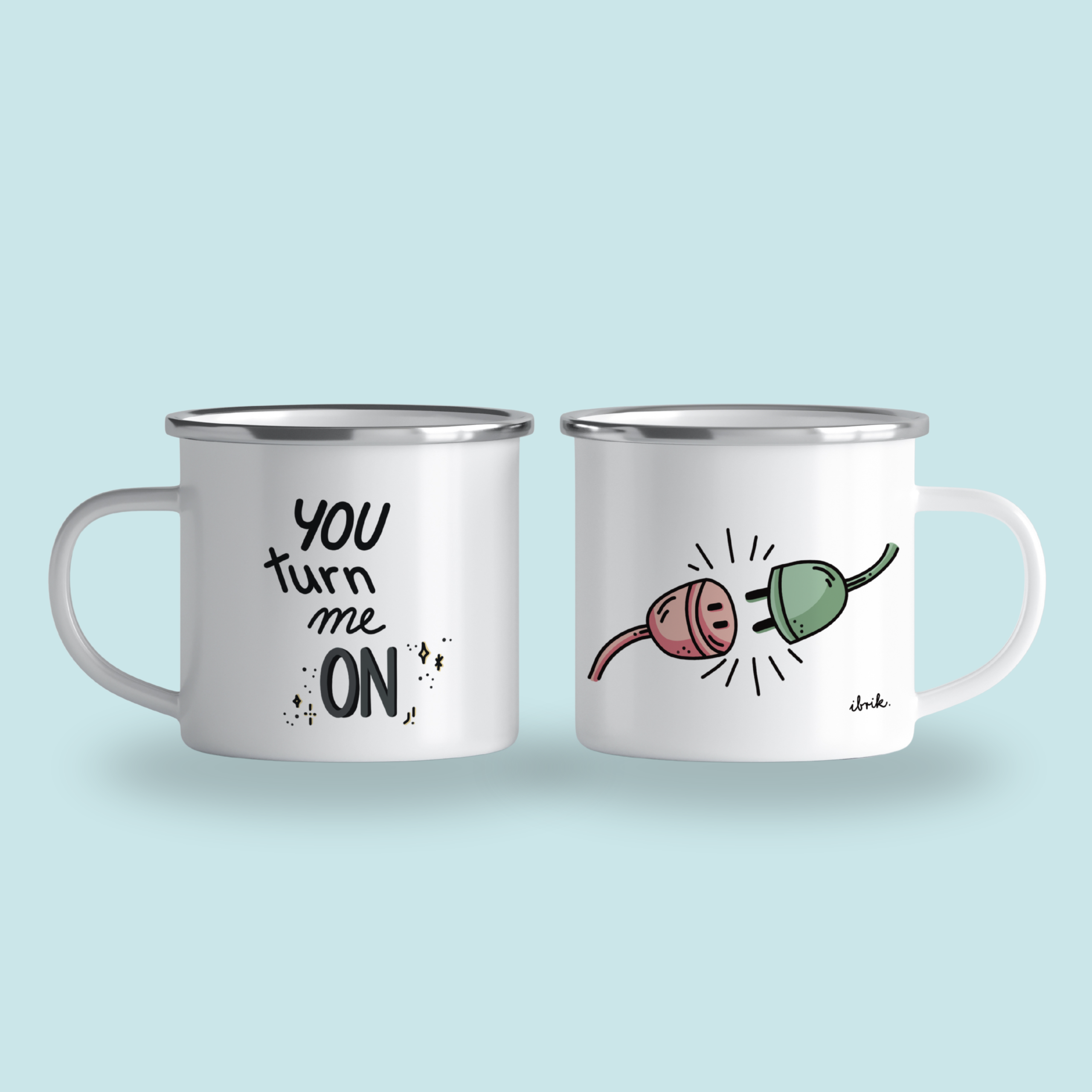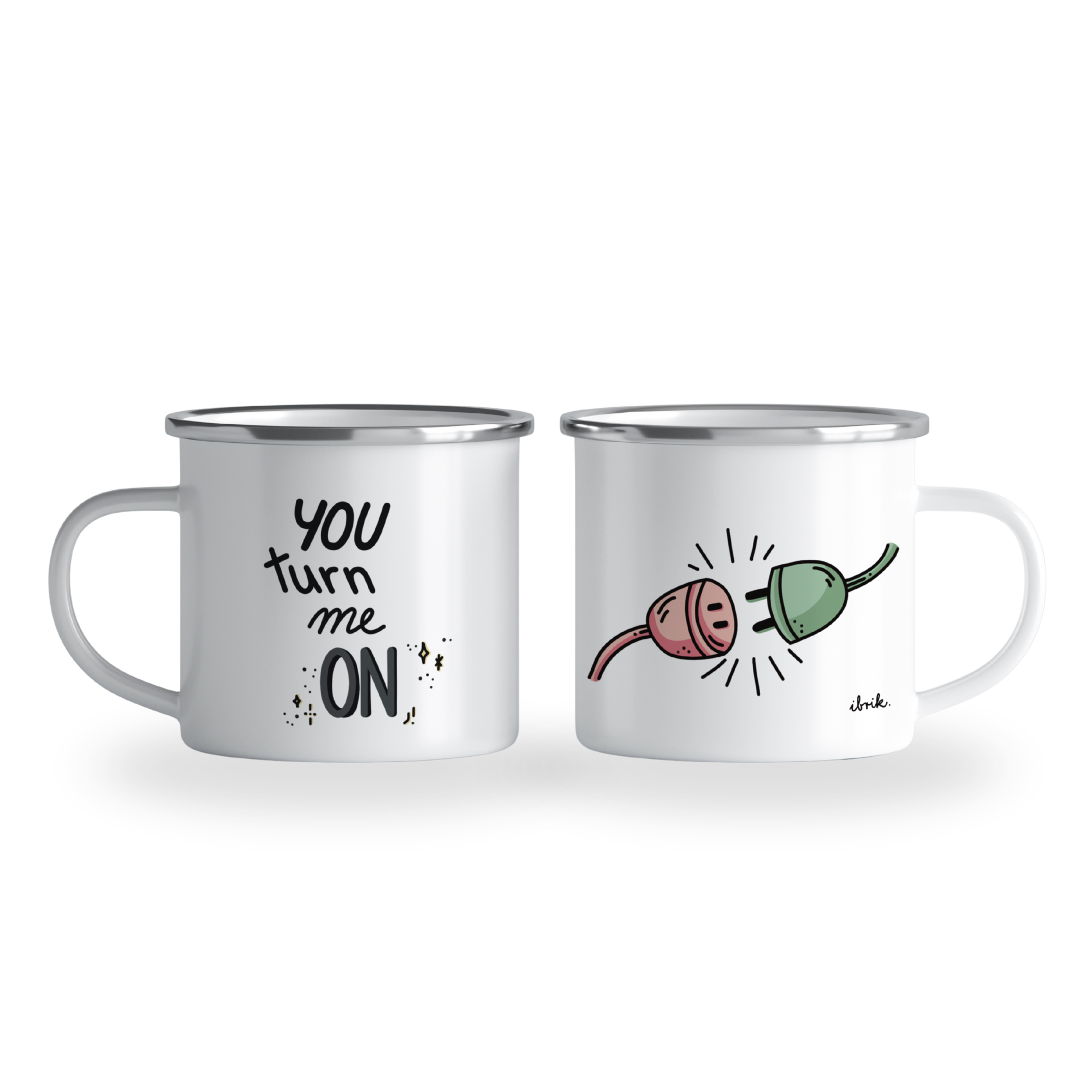 „You turn me on” cană emailată, alb, ibrik, 360 ml