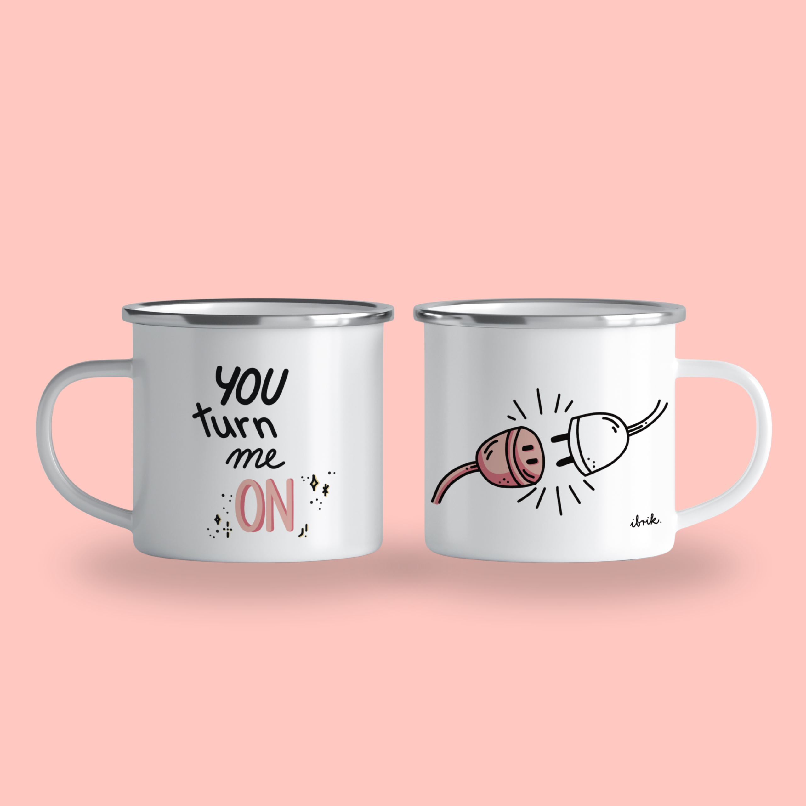 „You turn me on” – pink, cană emailată, alb, ibrik, 360 ml